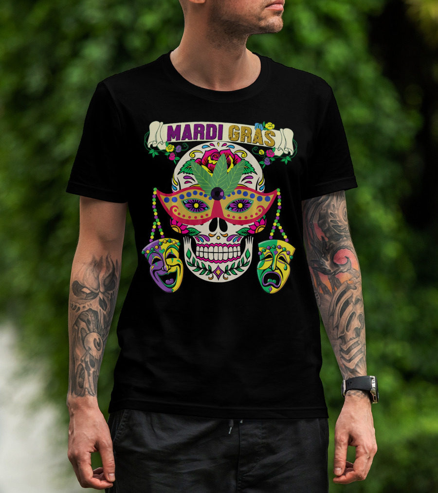 MARDI GRAS Skull Mask Comedy Tragedy New Orlea T-Shirt
