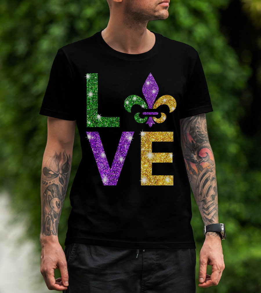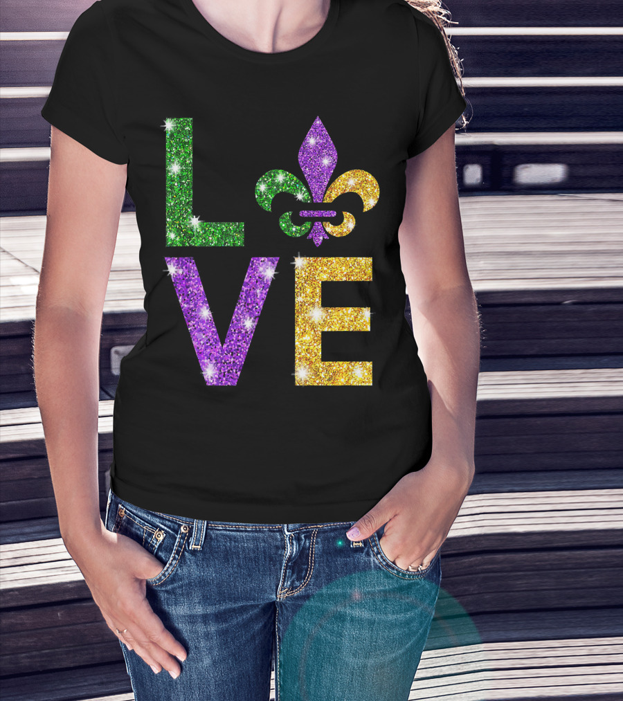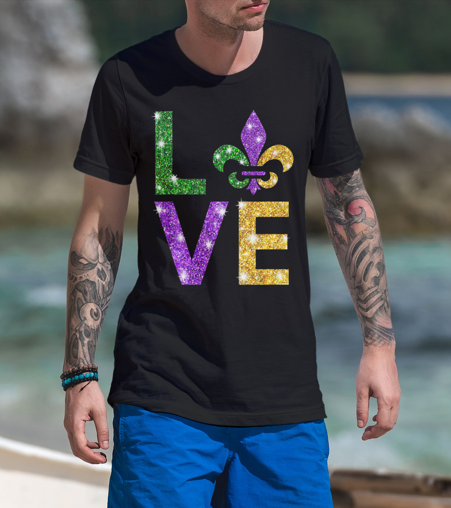 LOVE Mardi Gras Fleur-de-Lis Sparkling Colors T-Shirt