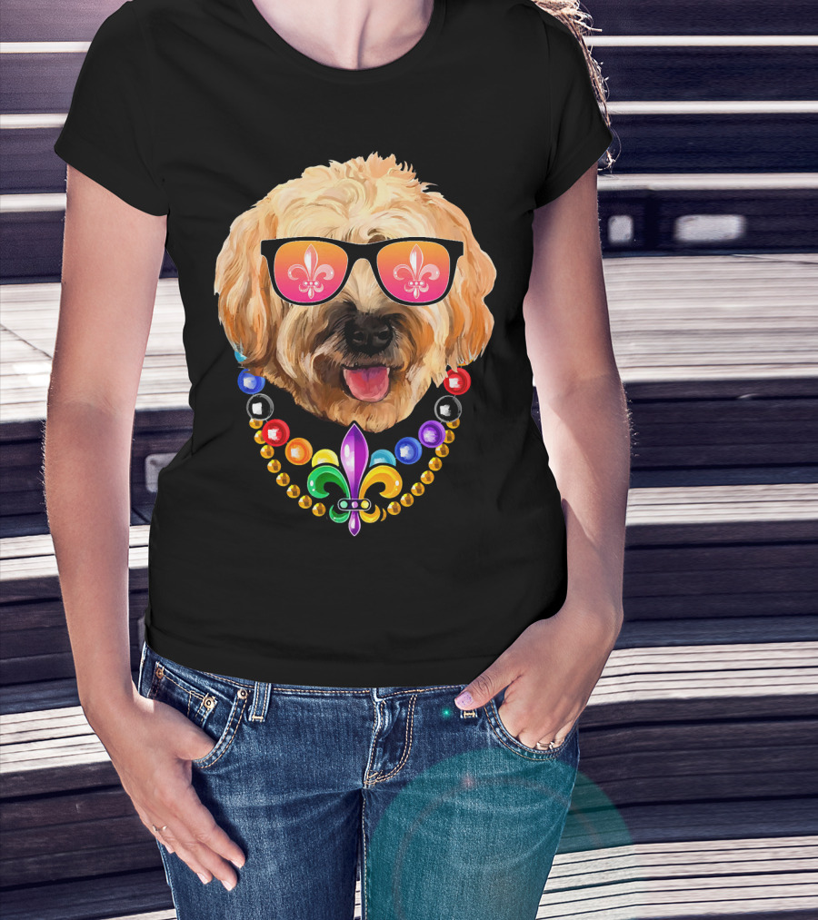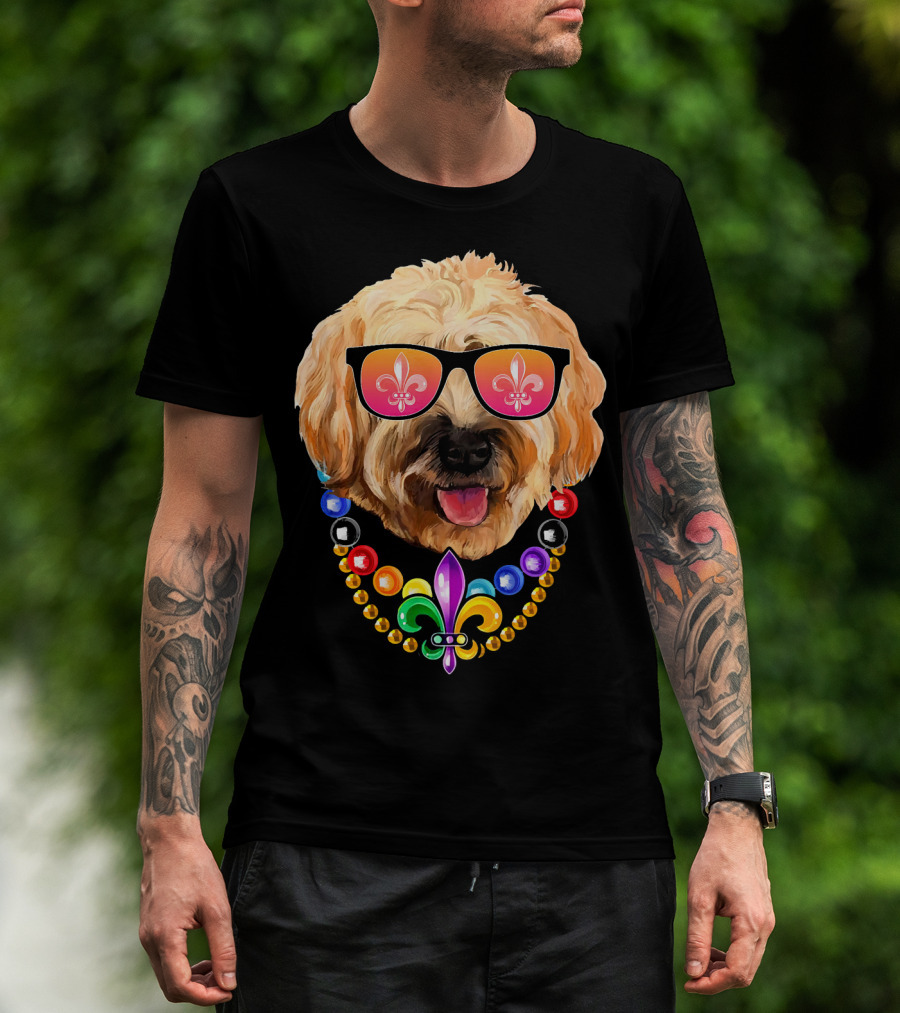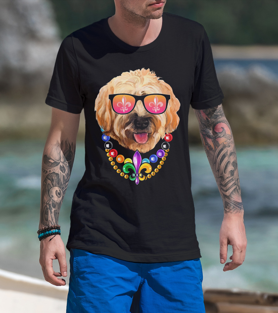 Goldendoodle Mardi Gras Beads Sunglasses Fleur-de-Lis T-Shirt