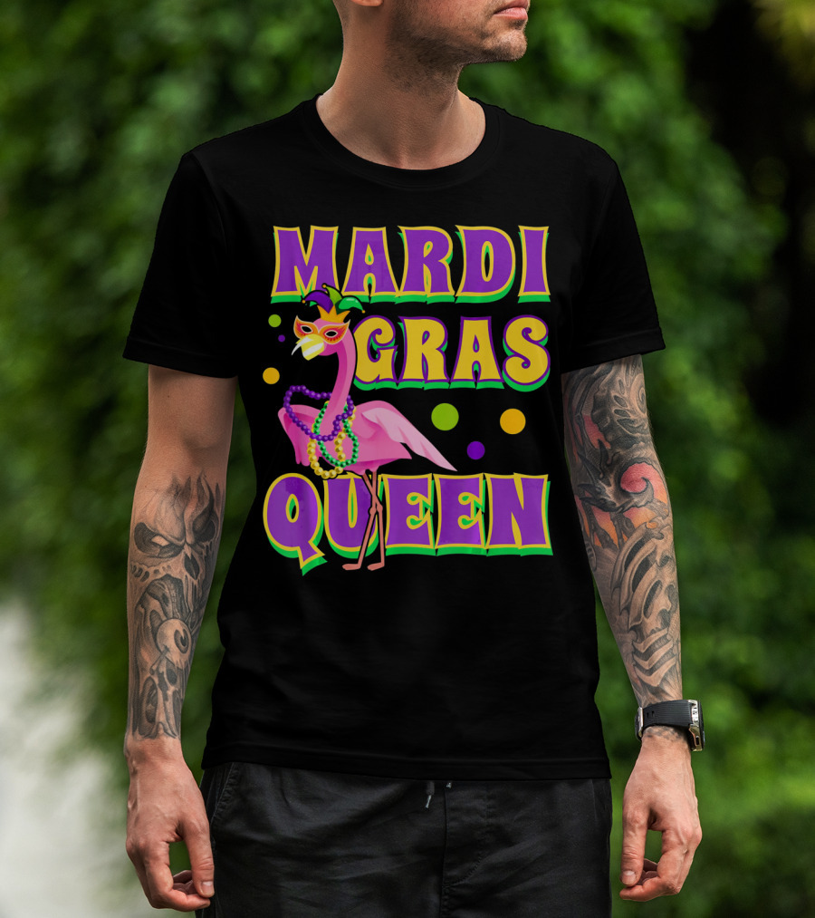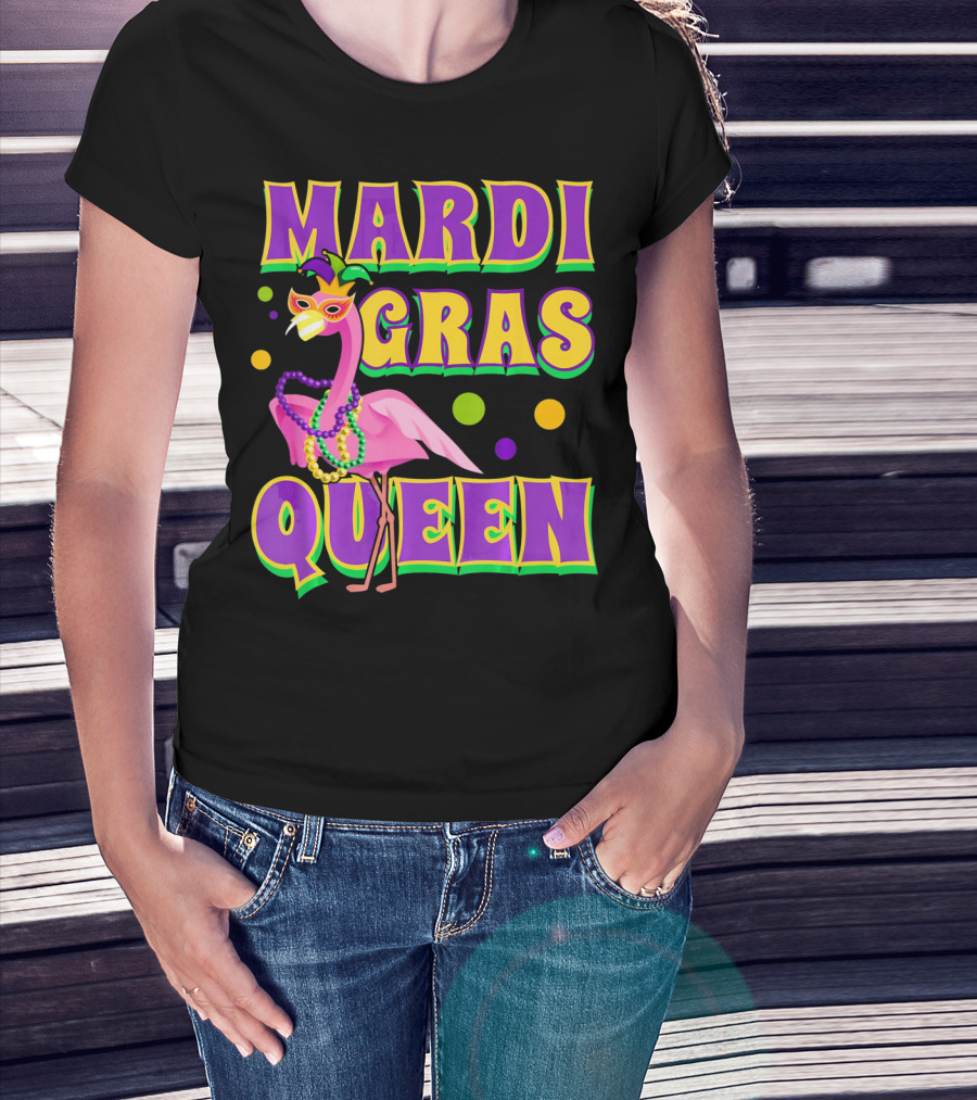 Mardi Gras Queen Fabulous Flamingo Beads And Mask T-Shirt