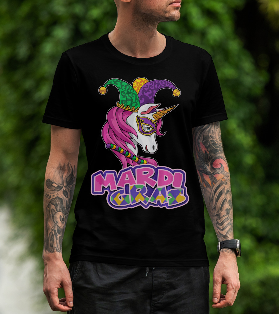 Mardi Gras Unicorn Jester Mask Carnival Lover T-Shirt
