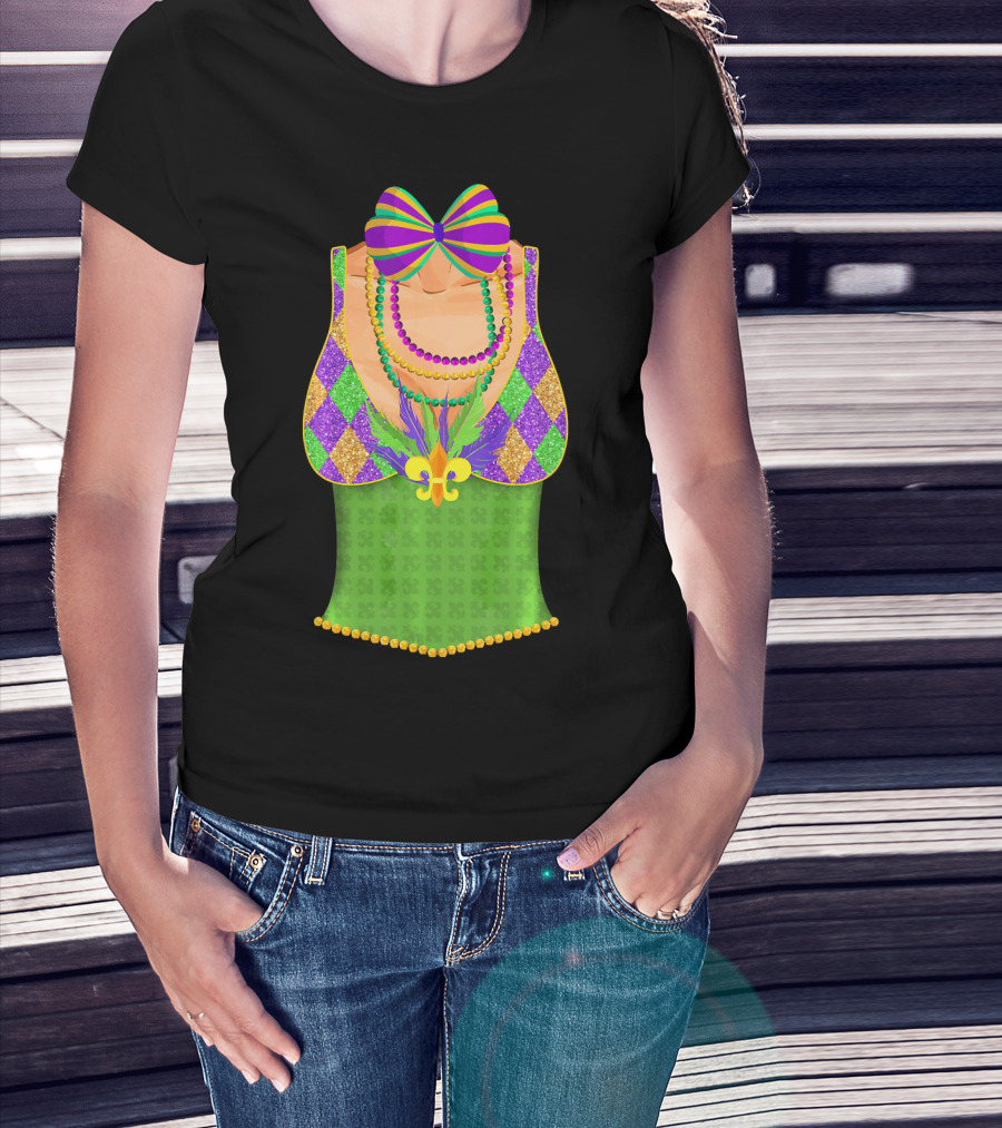 Colorful Mardi Gras Beads Tuxedo Costume With Harlequin T-Shirt