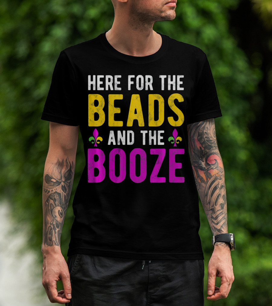 Here For The Beads And The Booze Mardi Gras Fleur-de-Lis T-Shirt