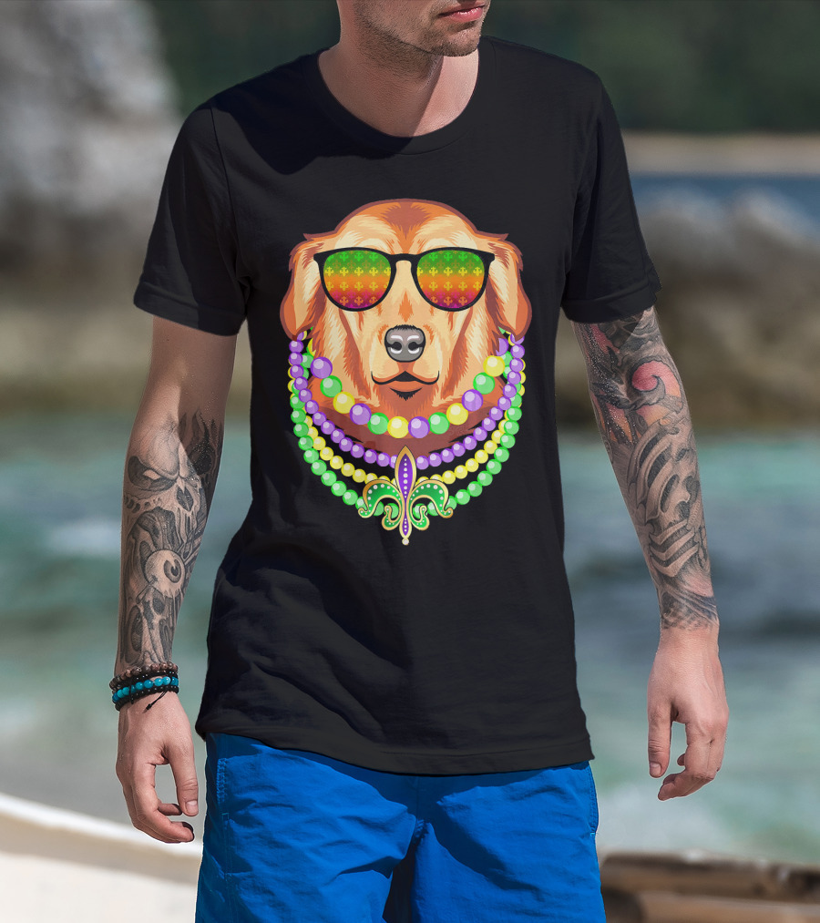 Beads And Golden Retriever Mardi Gras Fleur-de-Lis Colorful Glam Co T-Shirt