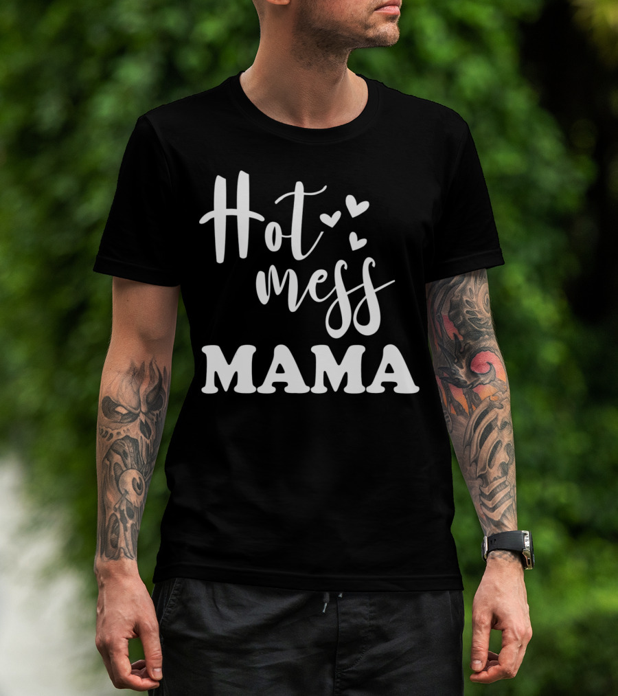 Hot Mess Mama Funny Parenting Mother With Hearts T-Shirt