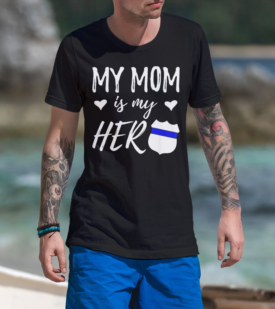My Mom Is My Hero Police Badge Thin Blue Line T-Shirt
