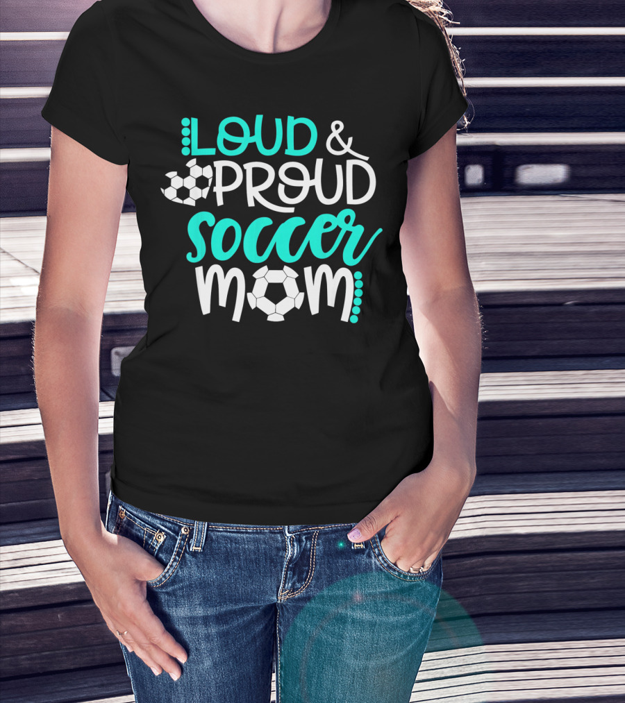 Loud Proud Soccer Mom Teal White Soccer Ball T-Shirt
