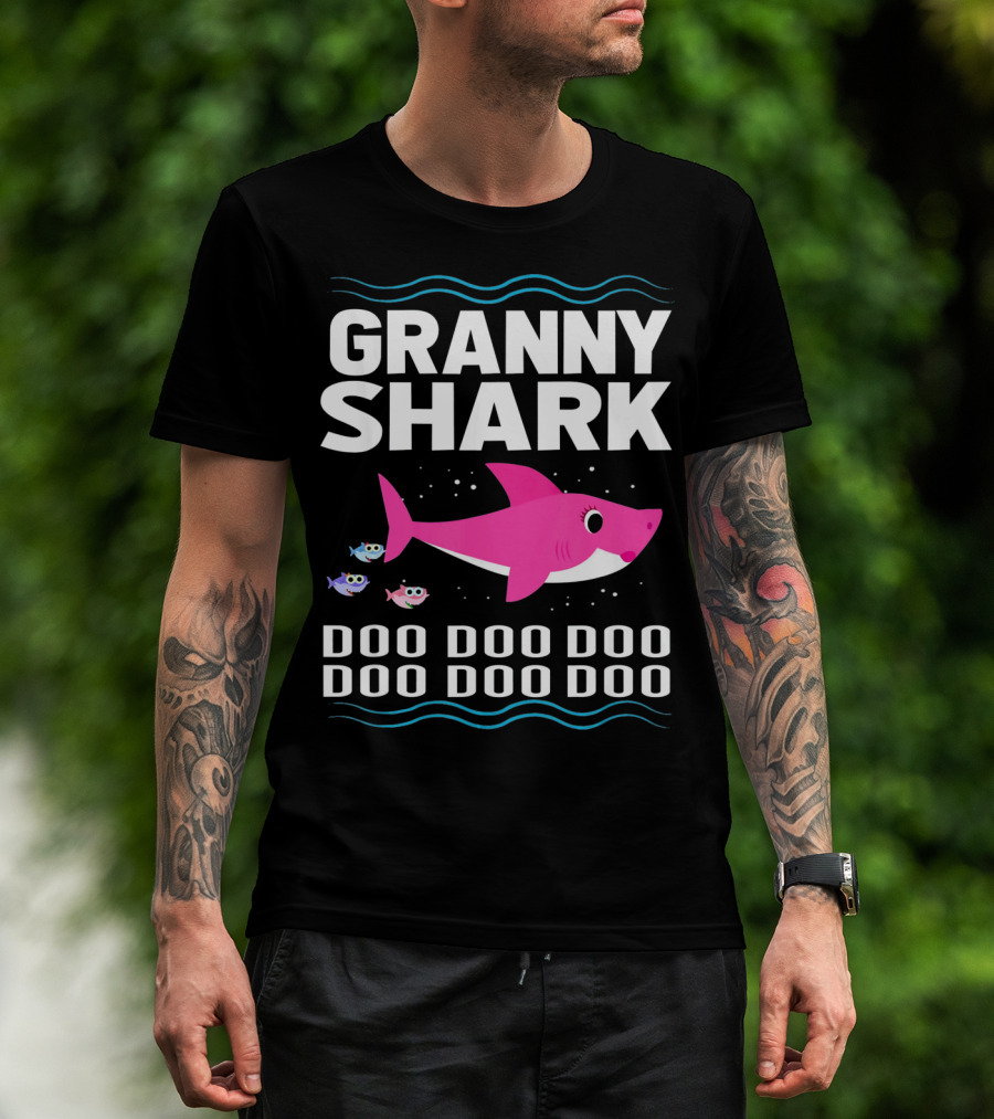 The Granny Shark Doo Doo Doo Doo Pink Funny Baby Shark T-shirt is designed for everyday wear and a consistent fit. Fabric is pre-shrunk ring-spun cotton with durable stitching. See the size chart below for exact measurements.
