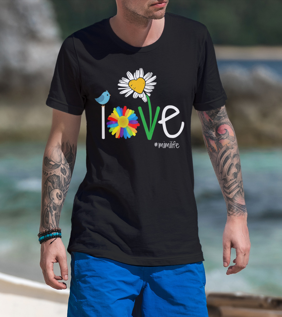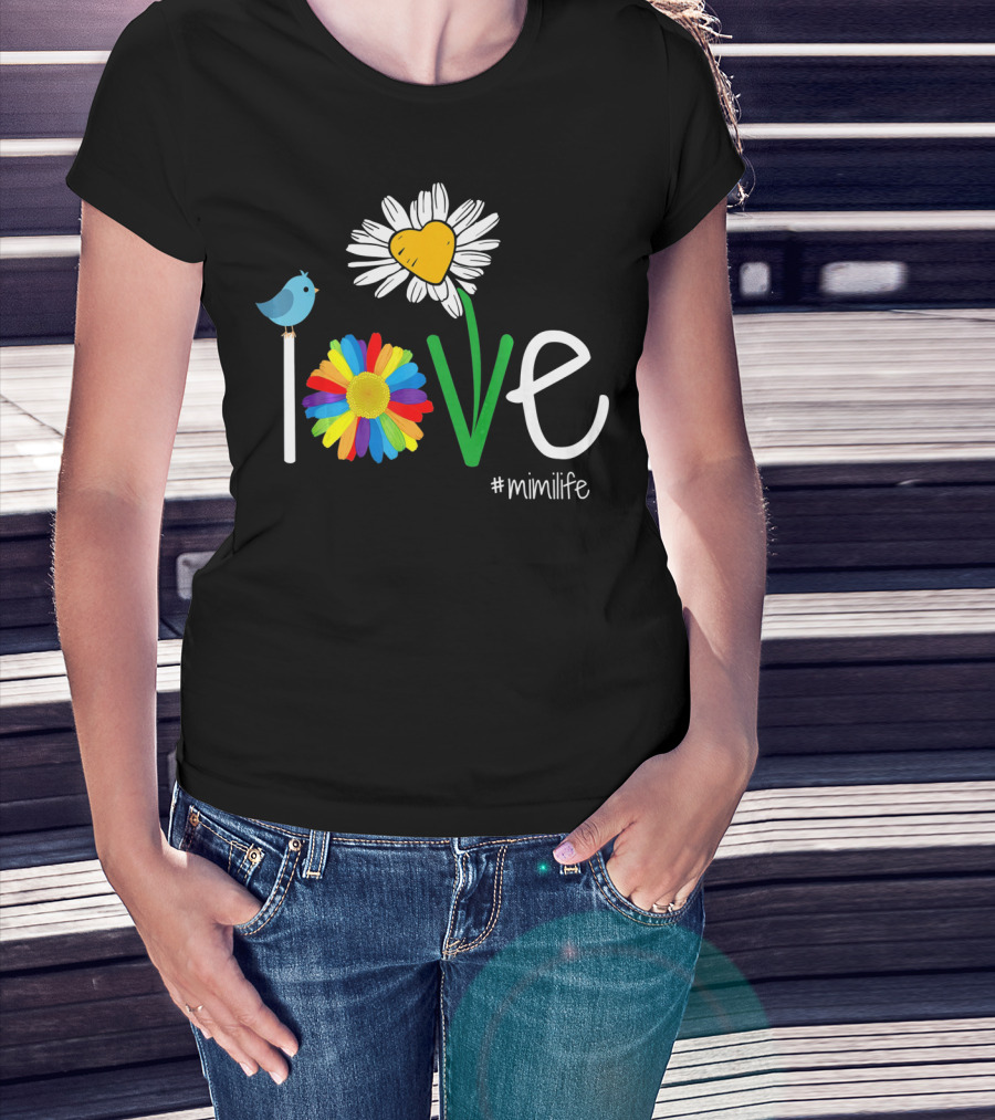Love Heart Rainbow Daisy Bird #mimilife Woman Mom Mimi Life T-Shirt