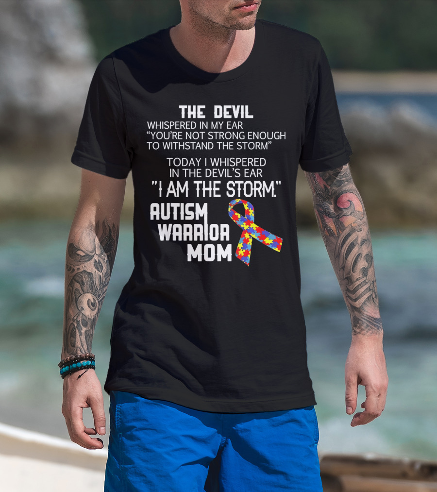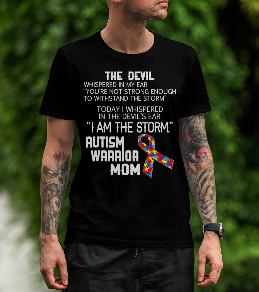 The Devil Whispered You're Not Strong Enough Autism Warrior Mom Puzzle T-Shirt