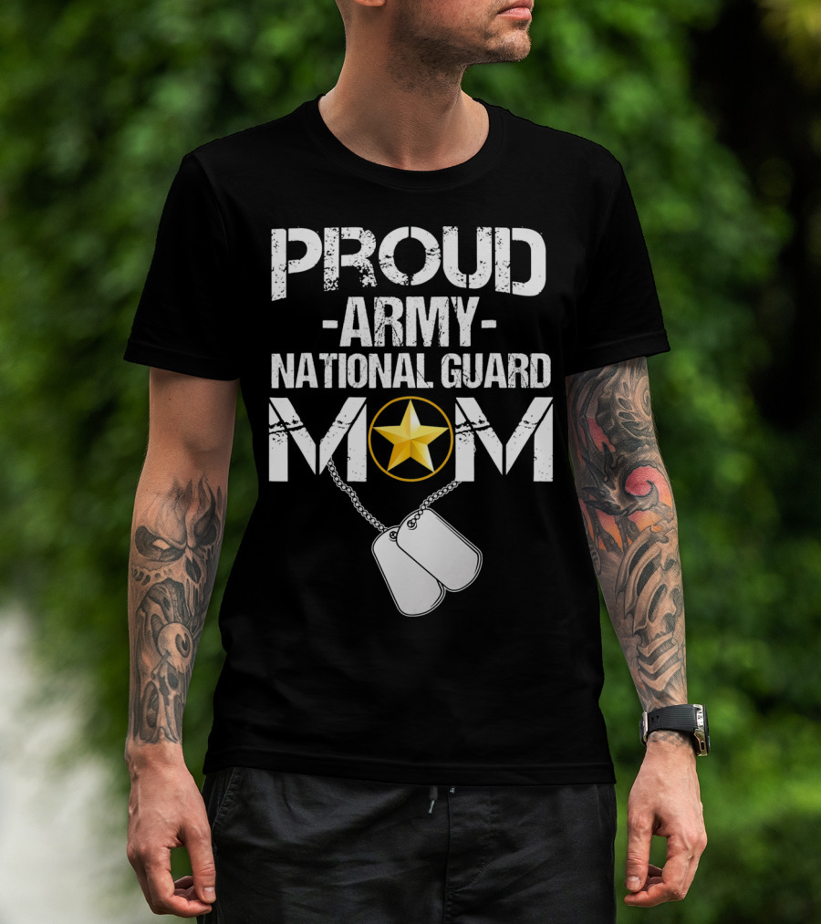 Proud Army National Guard Mom With Star And Dog Tags Veteran T-Shirt