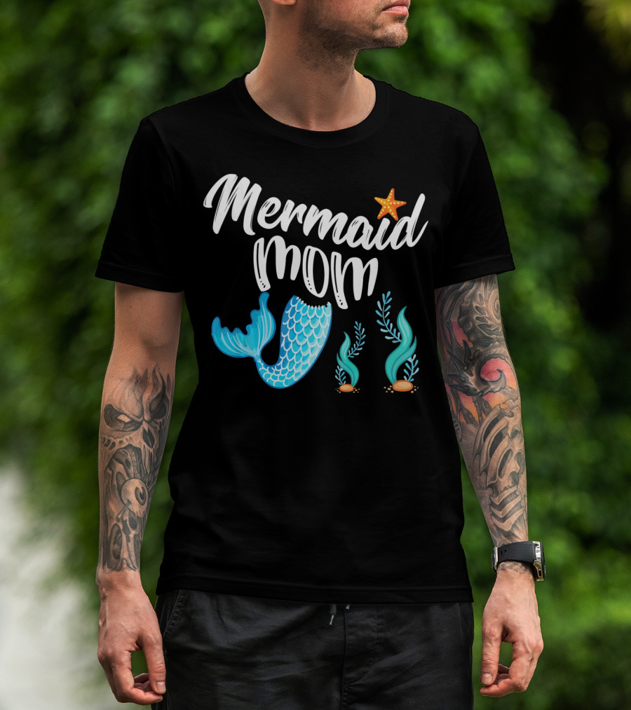 Mermaid Mom Starfish Tail Seashell Party Cute Out T-Shirt