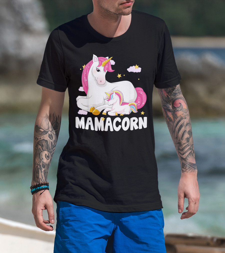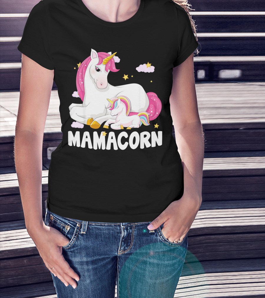 Mamacorn Unicorn New Mom Baby Momm With Stars And Clouds T-Shirt