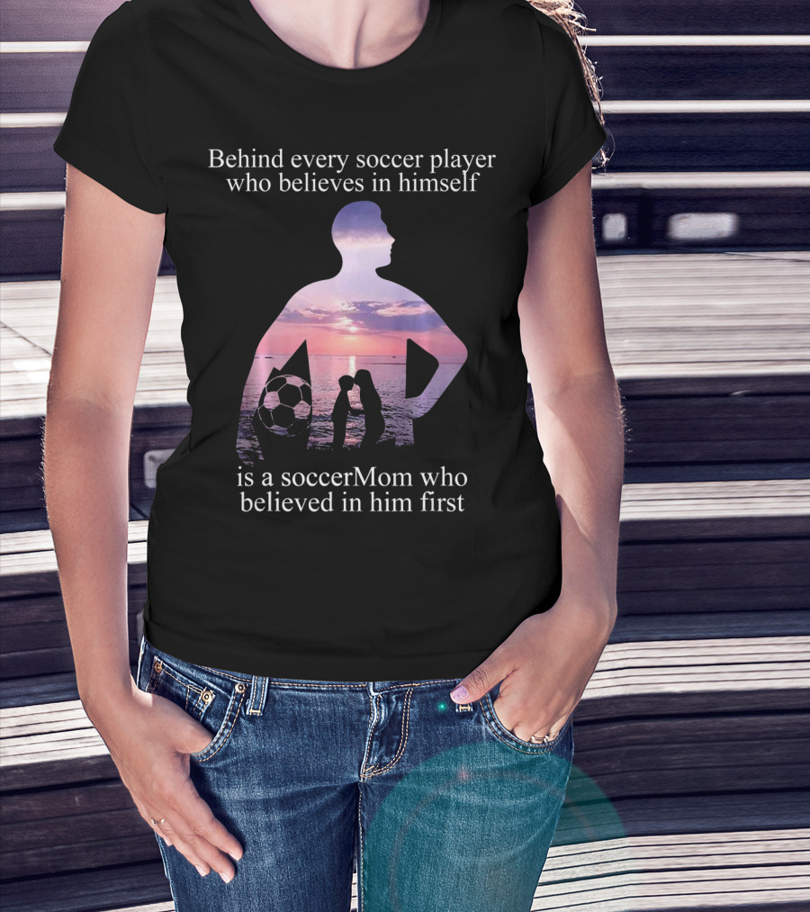 Behind Every Soccer Player Who Believes In Himself Is A SoccerMom Who Believed In Him First T-Shirt