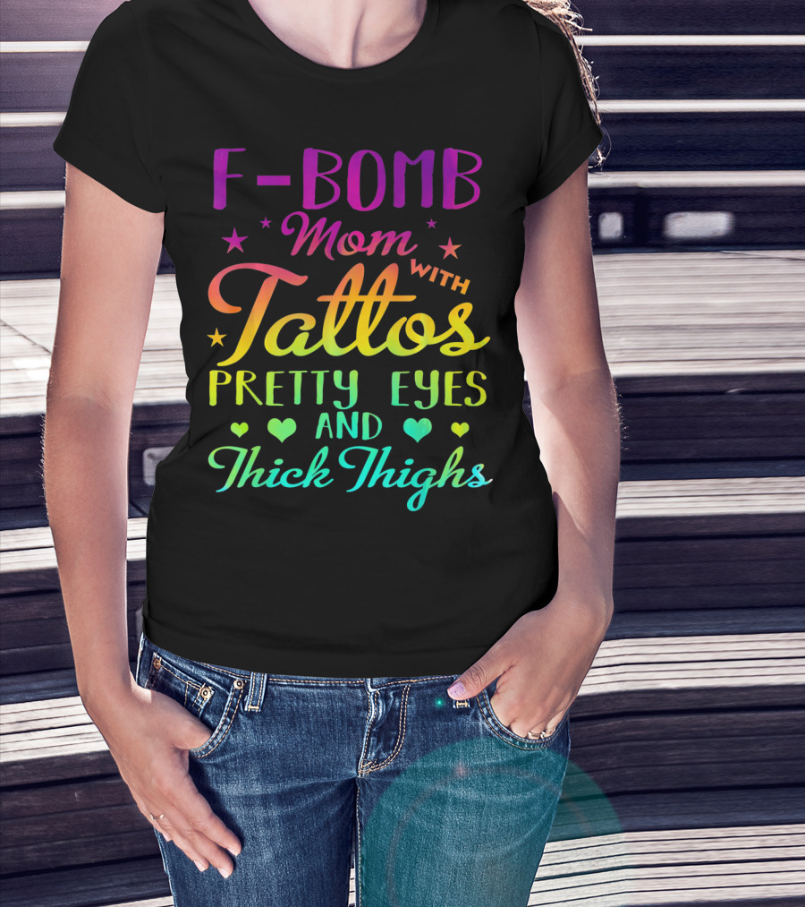 F Bomb Mom With Tattoos Pretty Eyes And Thick Thighs T-Shirt