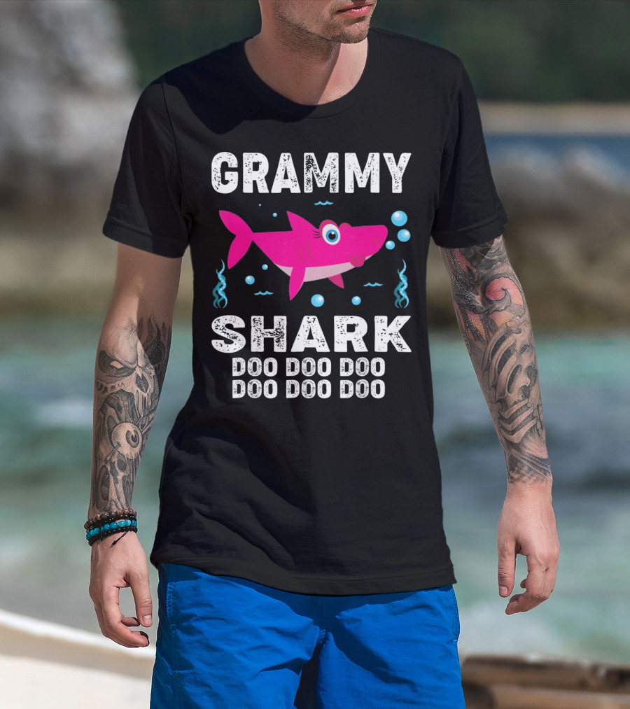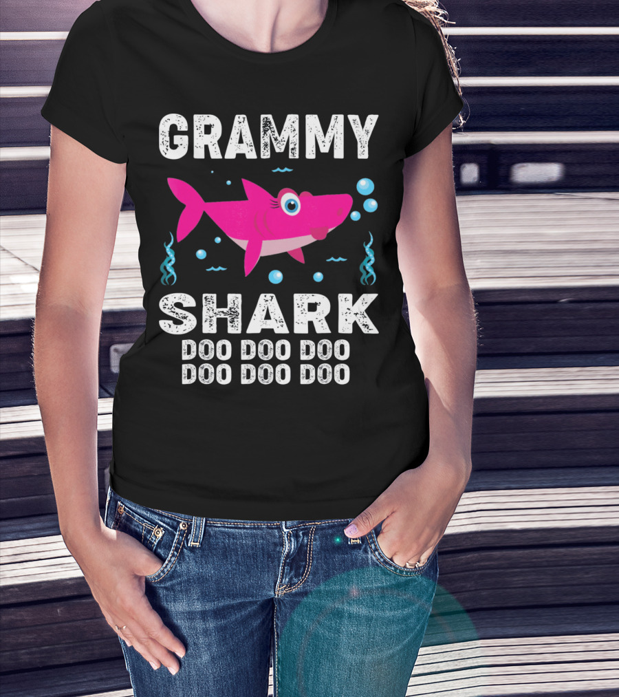 Grammy Shark Doo Doo Doo Bubbles And Pink Shark Fun T-Shirt