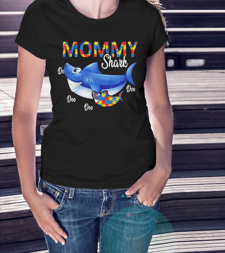 MOMMY Shark Puzzle Autism Awareness Doo Doo T-Shirt
