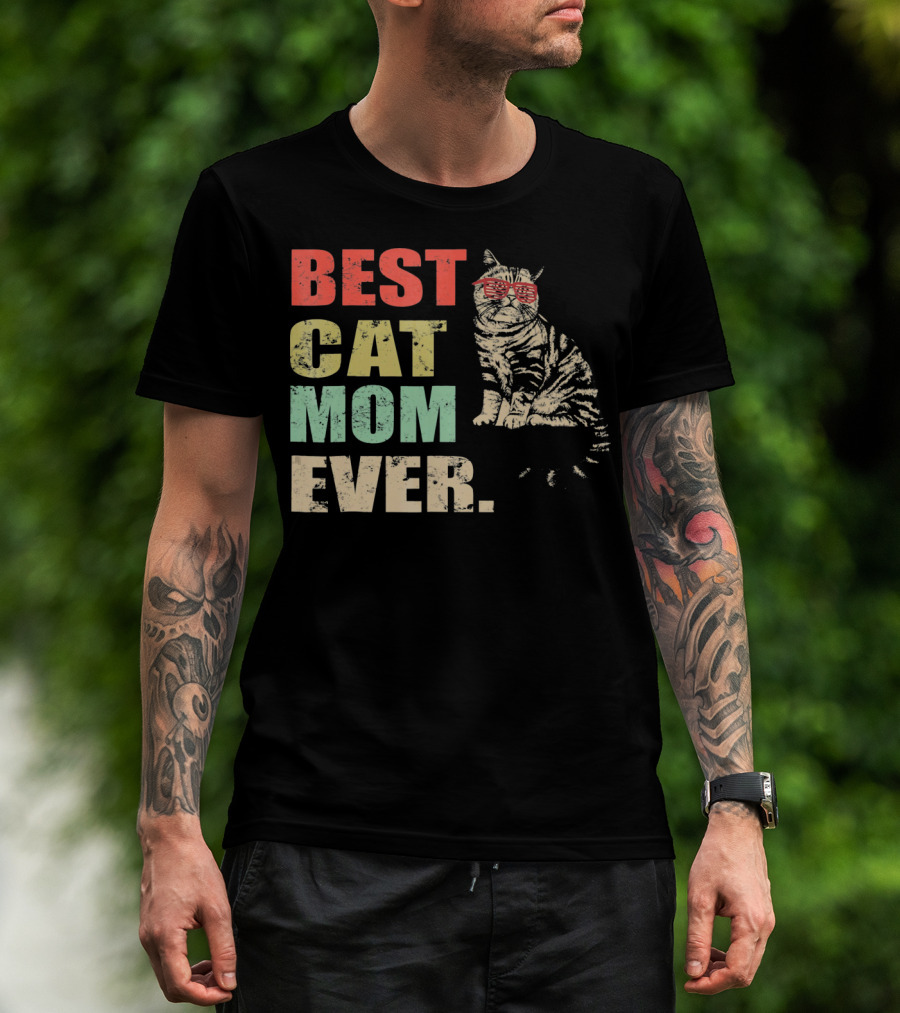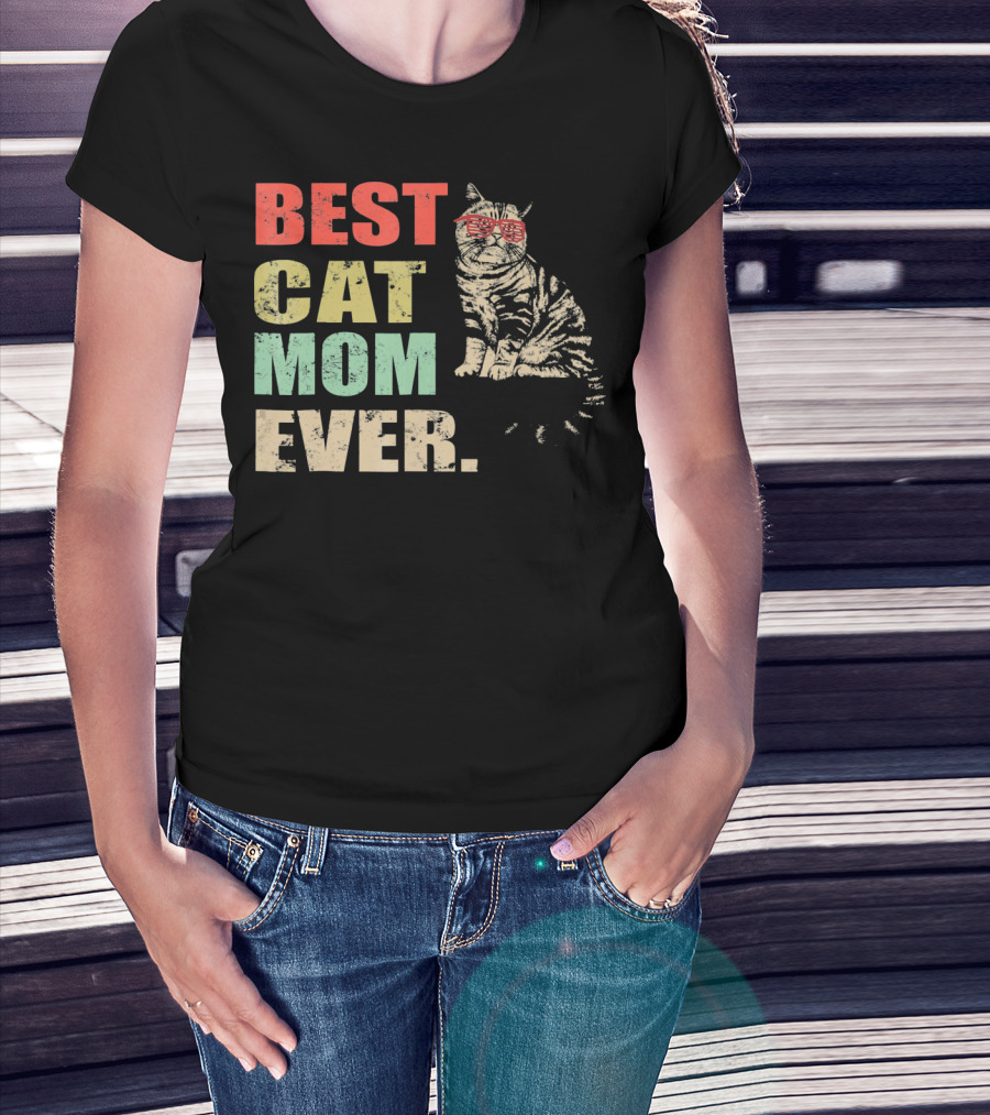 Best Cat Mom Ever Retro Cool Cat Design Matching Family T-Shirt