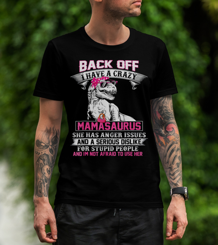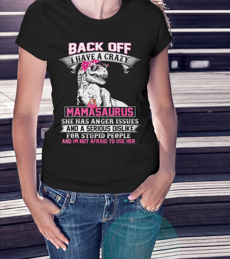 Back Off I Have A Crazy Mamasaurus She Has Anger Issues And A Serious Dislike For Stupid People And I'm Not Afraid To Use Her T-Shirt