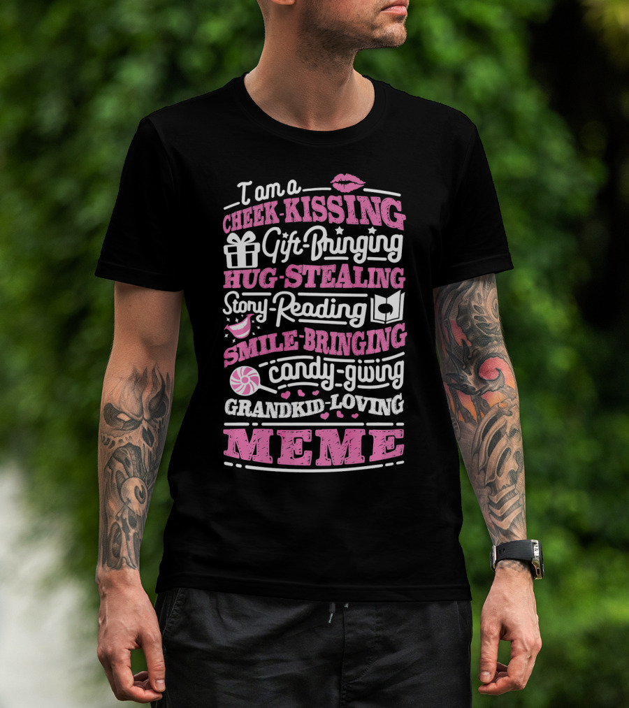 I Am A Cheek-Kissing Gift-Bringing Hug-Stealing Story-Reading Smile-Bringing Candy-Giving Grandkid-Loving Meme T-Shirt