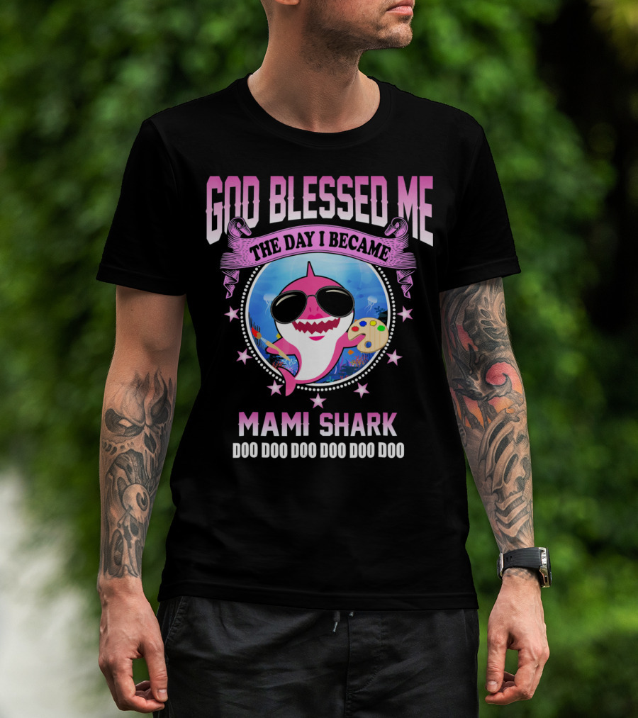 GOD Blessed Me The Day I Became Mami Shark Doo Doo Doo Doo Doo Doo T-Shirt