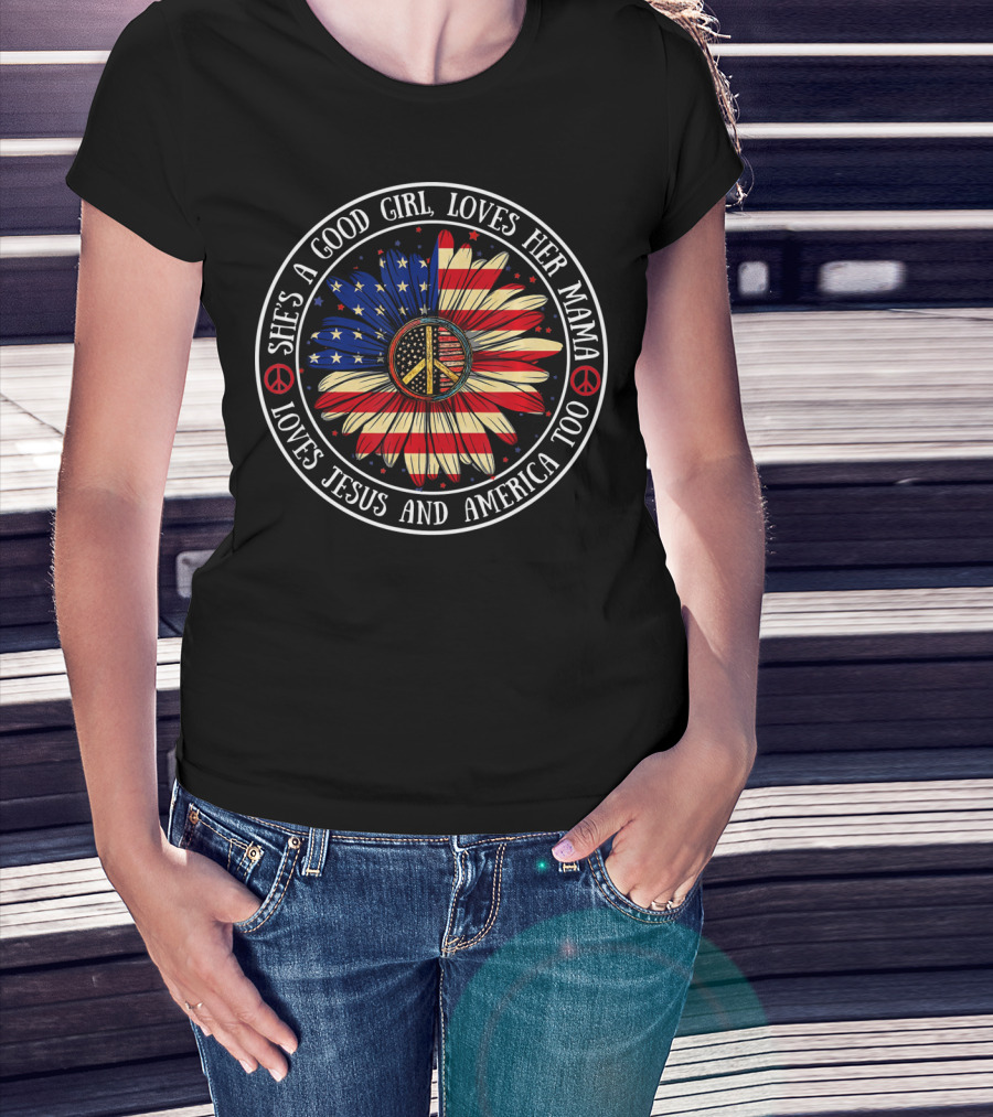 She's A Good Girl Loves Her Mama Loves Jesus And America Peace Flower T-Shirt