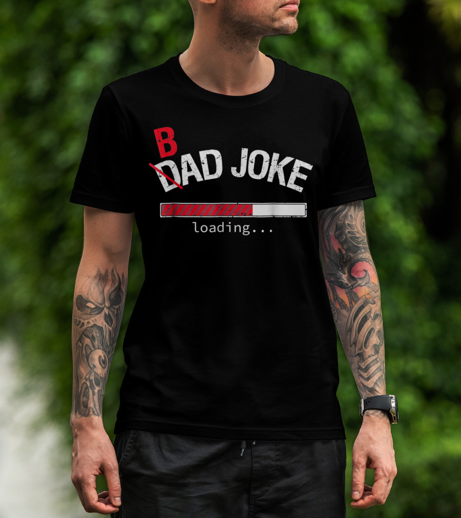 The Dad Joke Loading Bad Joke Mens T-shirt is designed for everyday wear and a consistent fit. Fabric is pre-shrunk ring-spun cotton with durable stitching. See the size chart below for exact measurements.