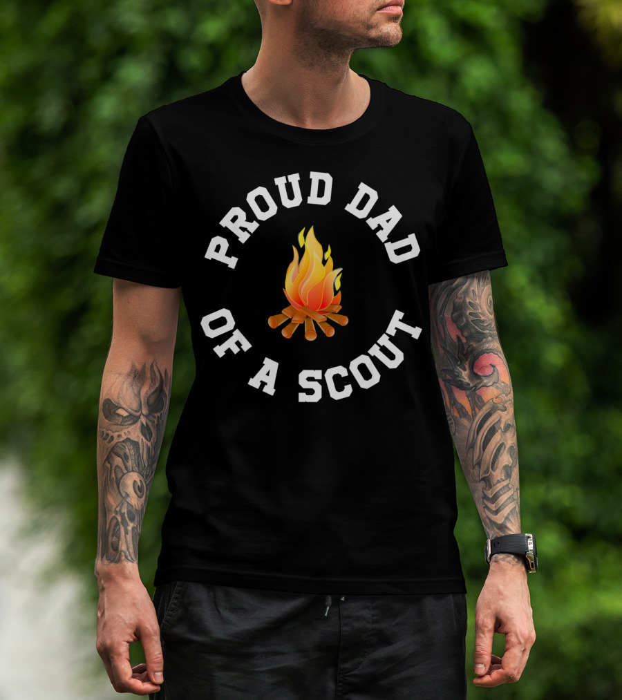 The Proud Dad of a Scout Campfire T-shirt is designed for everyday wear and a consistent fit. Fabric is pre-shrunk ring-spun cotton with durable stitching. See the size chart below for exact measurements.