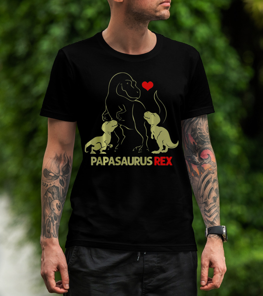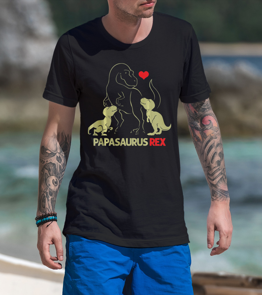Papasaurus Rex Dinosaur Heart Family Father's Day T-Shirt