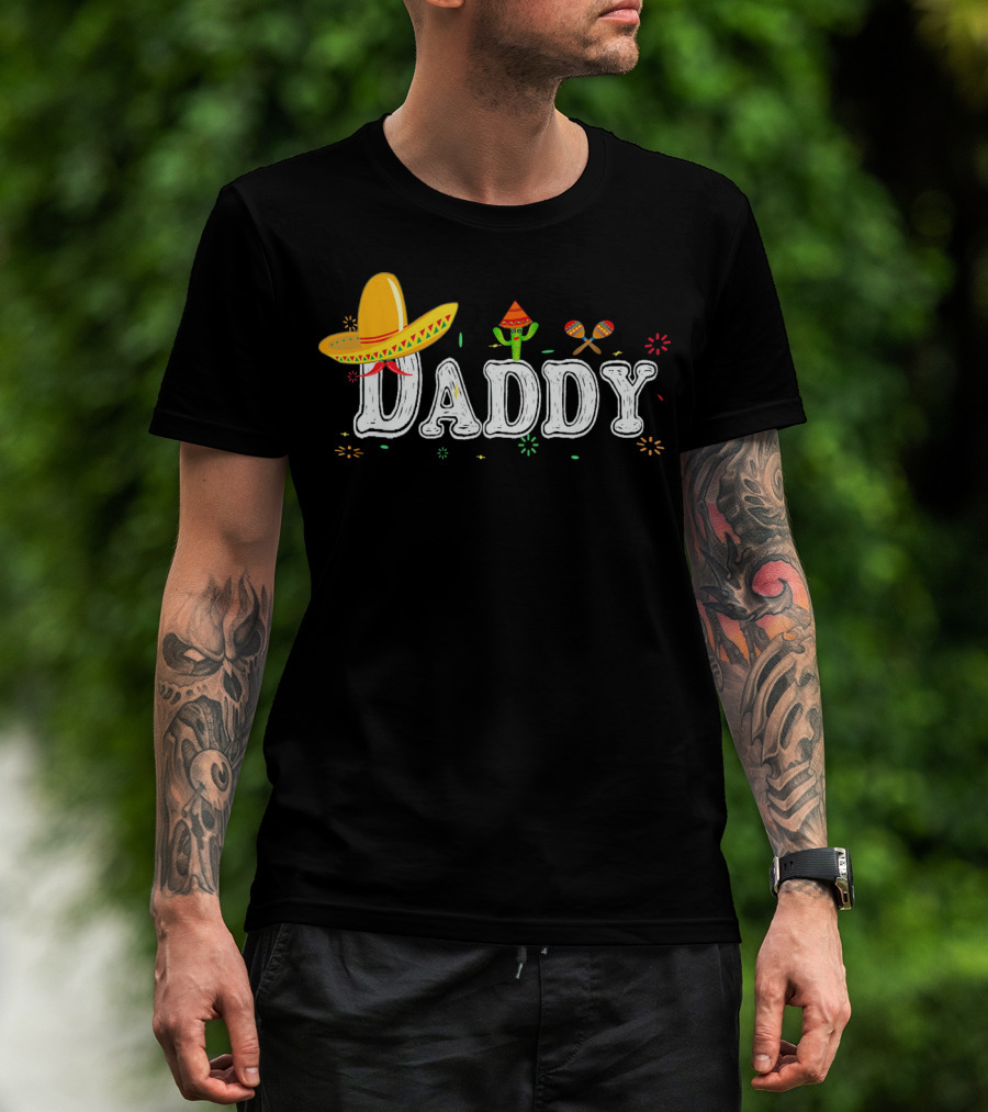 Daddy Cinco De Mayo Fiesta Mexican Sombrero Cactus Maracas T-Shirt
