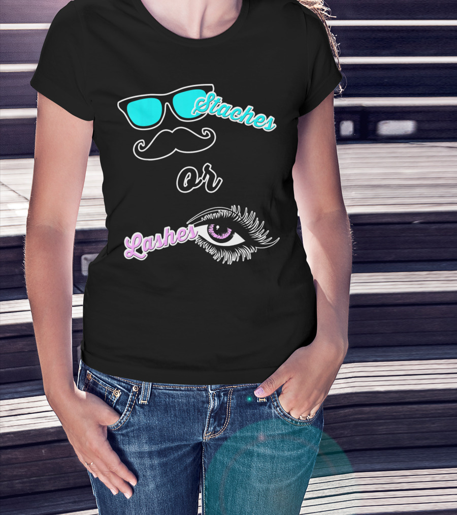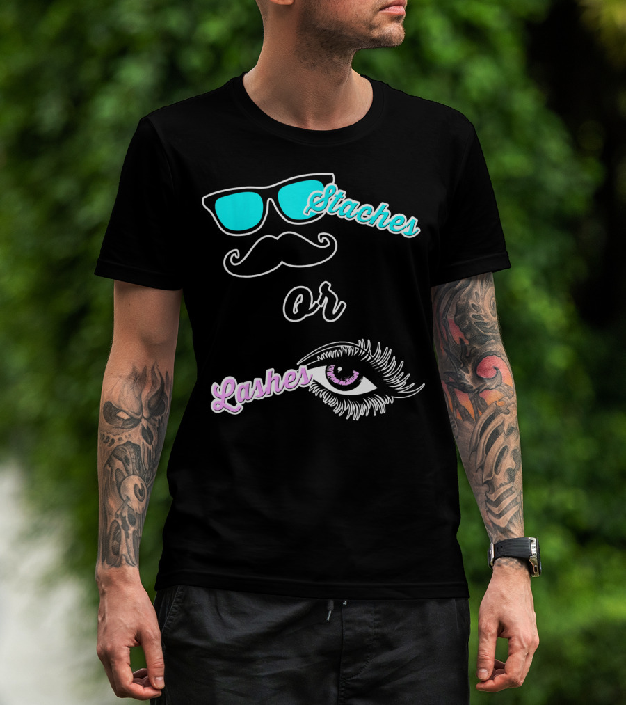 Staches Or Lashes Gender Reveal Sunglasses Mustache Eyelash Eye T-Shirt