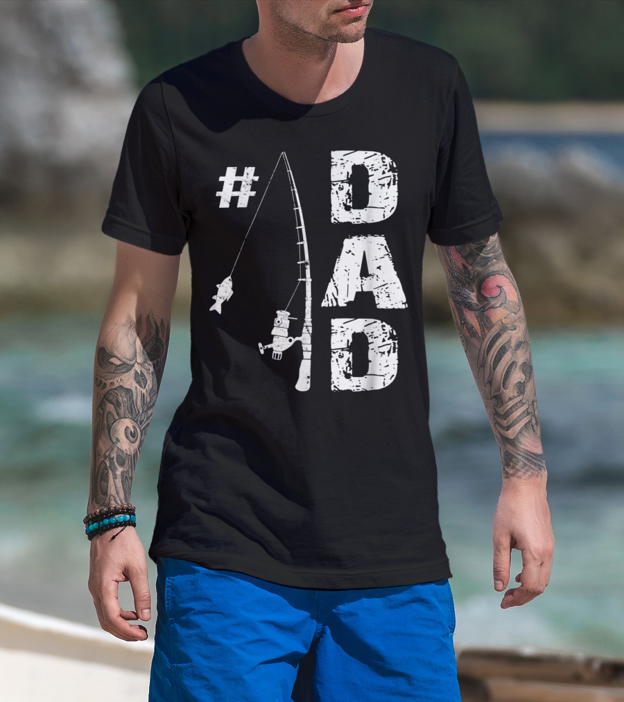1 Dad Fishing Rod Catching Fish T-Shirt