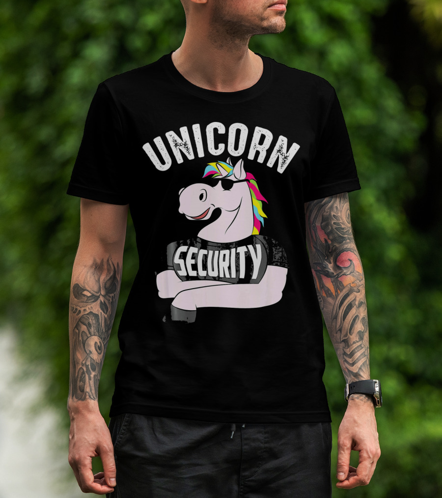 The Unicorn Security Shirt for Men Fana T-shirt is designed for everyday wear and a consistent fit. Fabric is pre-shrunk ring-spun cotton with durable stitching. See the size chart below for exact measurements.