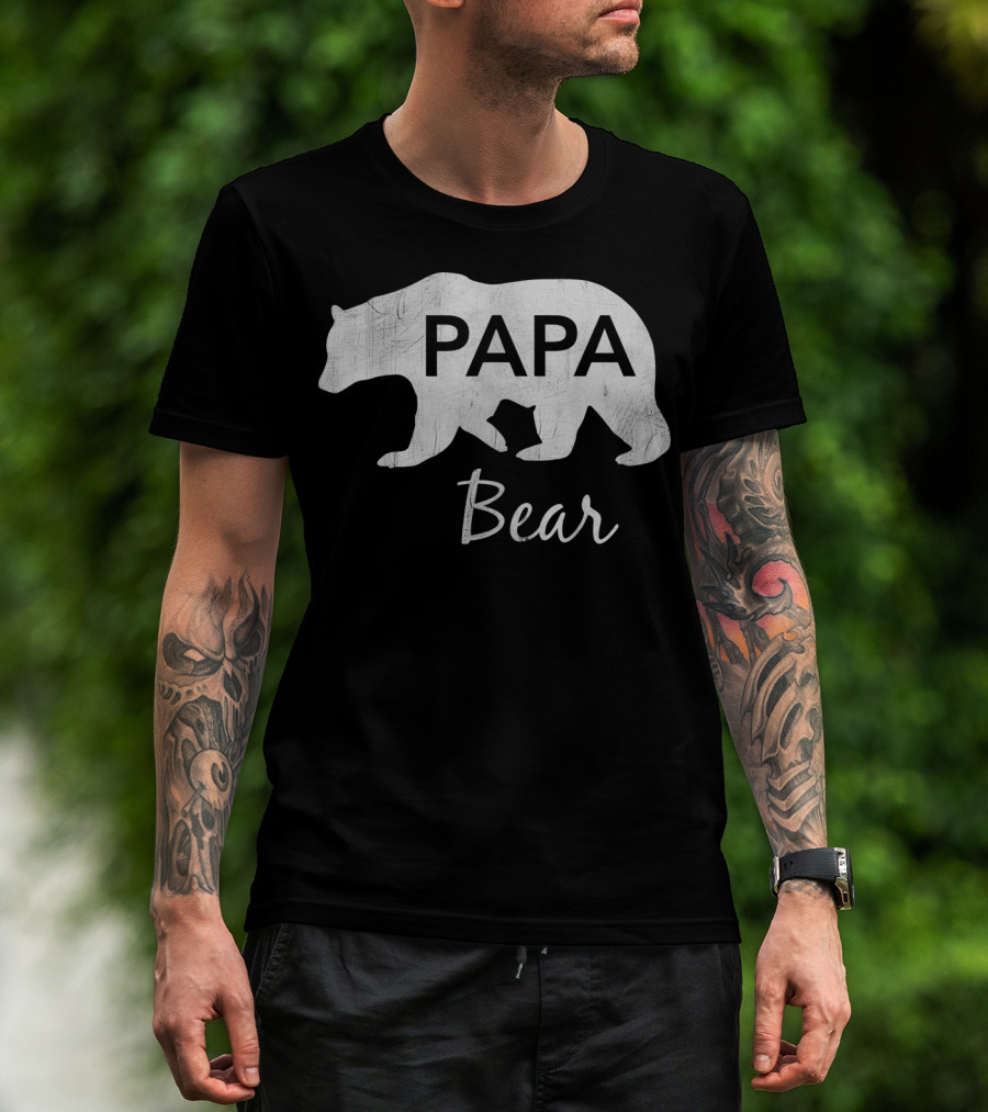 The Papa Bear Mens Great T-shirt is designed for everyday wear and a consistent fit. Fabric is pre-shrunk ring-spun cotton with durable stitching. See the size chart below for exact measurements.