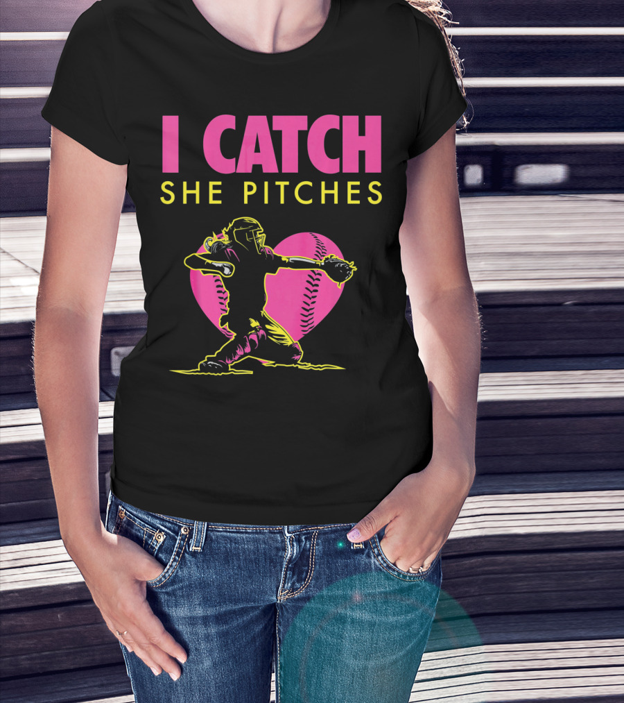 Softball Dad And Mom I Catch She Pitches T-Shirt