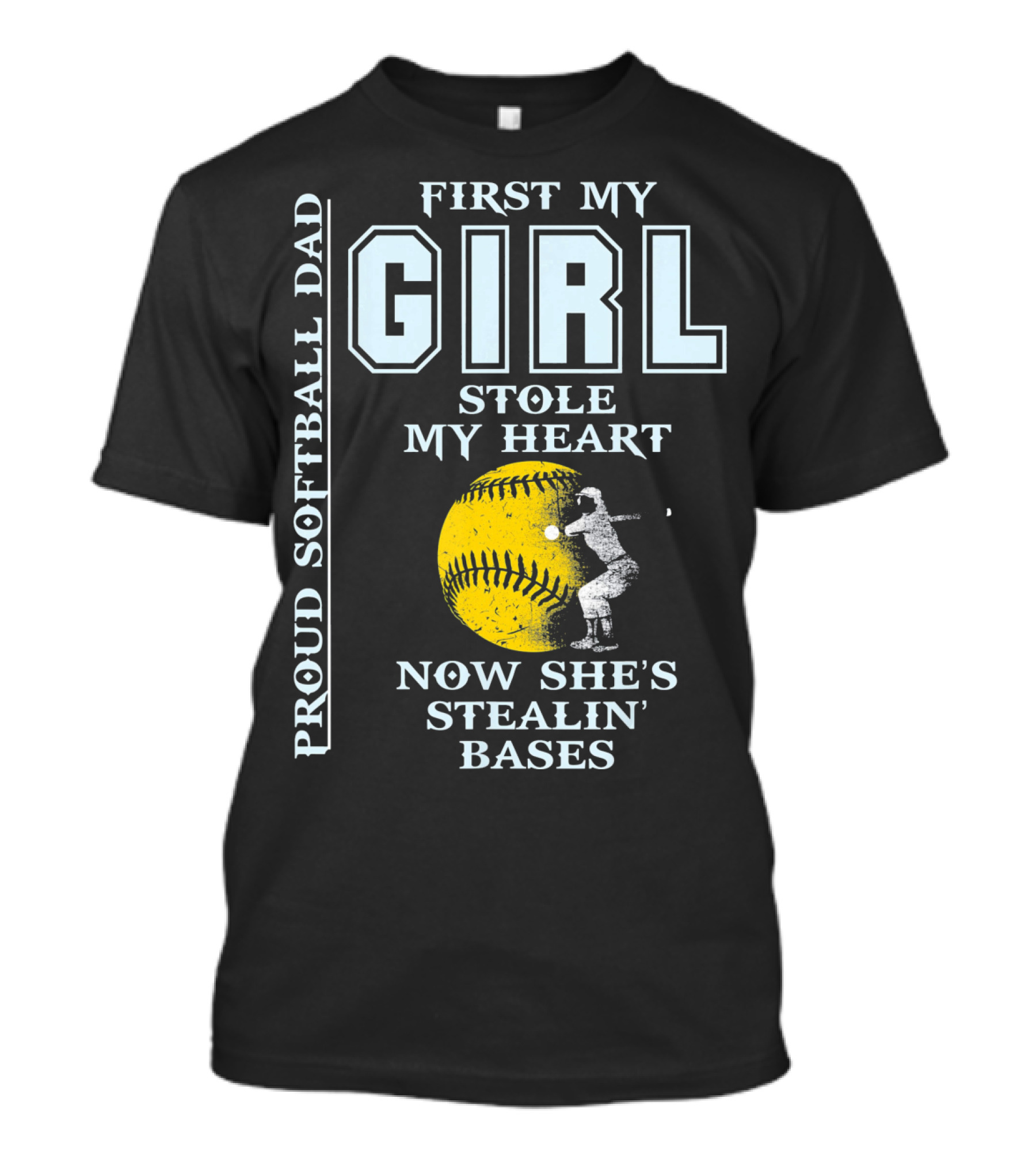 Proud Softball Dad First My Girl Stole My Heart Now She's Stealin' Bases T-Shirt