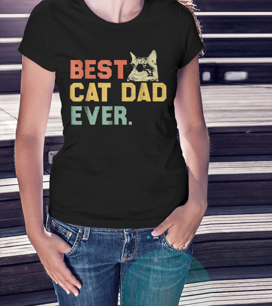 Best Cat Dad Ever Vintage Sunglasses Cat Daddy T-Shirt
