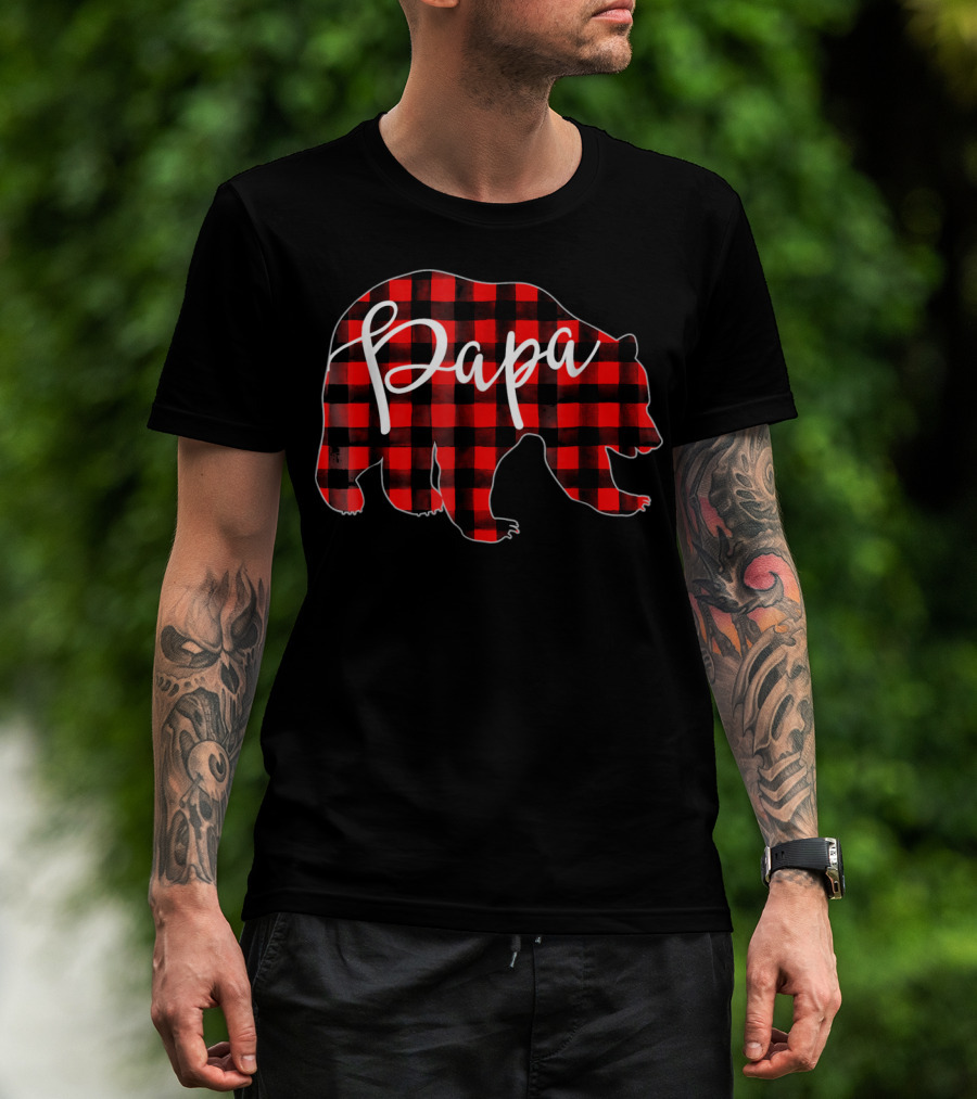The Papa Bear Red Plaid Silhouette Mens T-shirt is designed for everyday wear and a consistent fit. Fabric is pre-shrunk ring-spun cotton with durable stitching. See the size chart below for exact measurements.