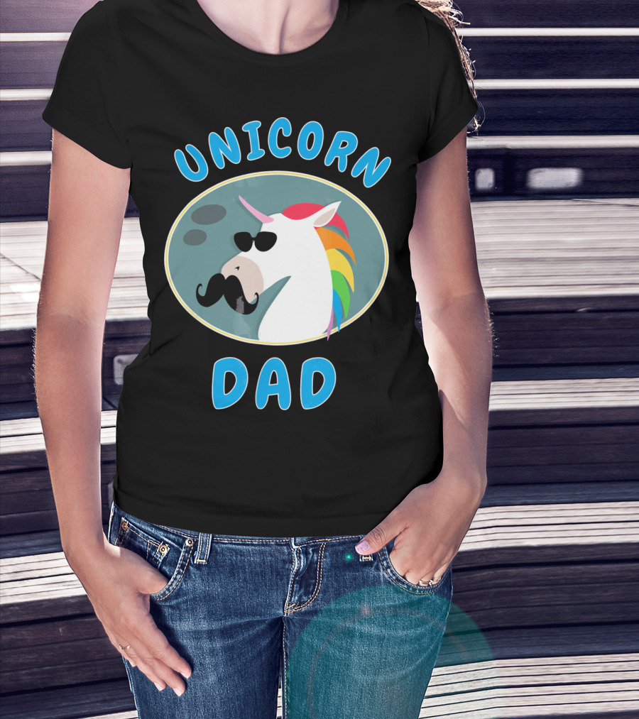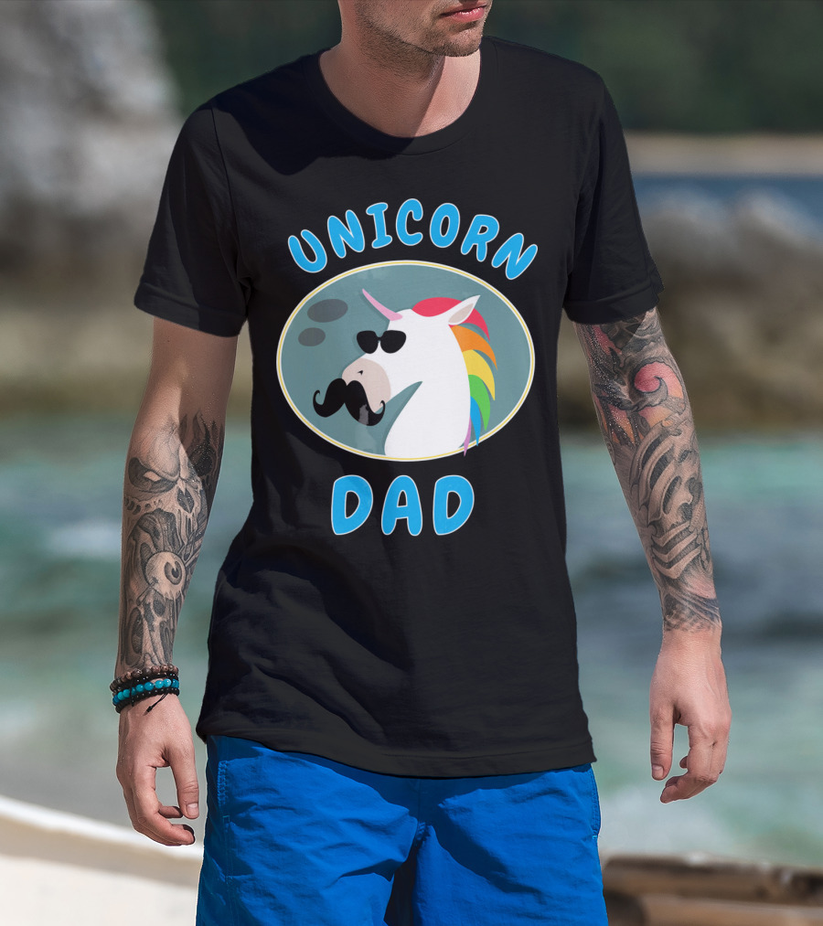 Unicorn Dad Funny Father Rainbow Mustache Sunglasses T-Shirt