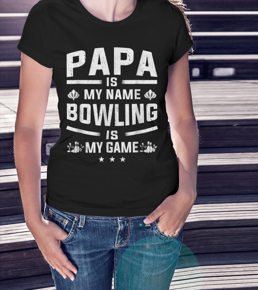 Papa Is My Name Bowling Is My Game Three Stars Bowling Pins T-Shirt