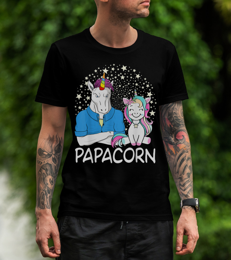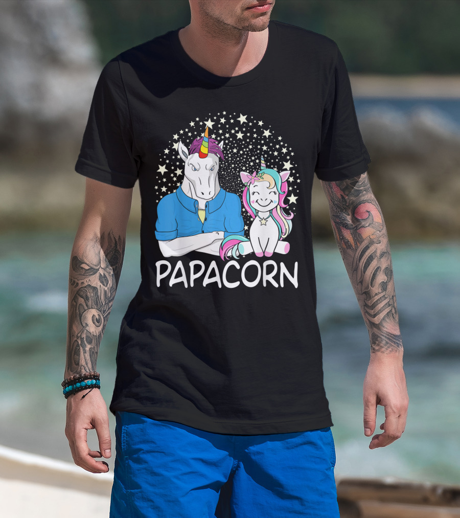 Papacorn Unicorn Dad And Baby Daddy Mens Stars T-Shirt