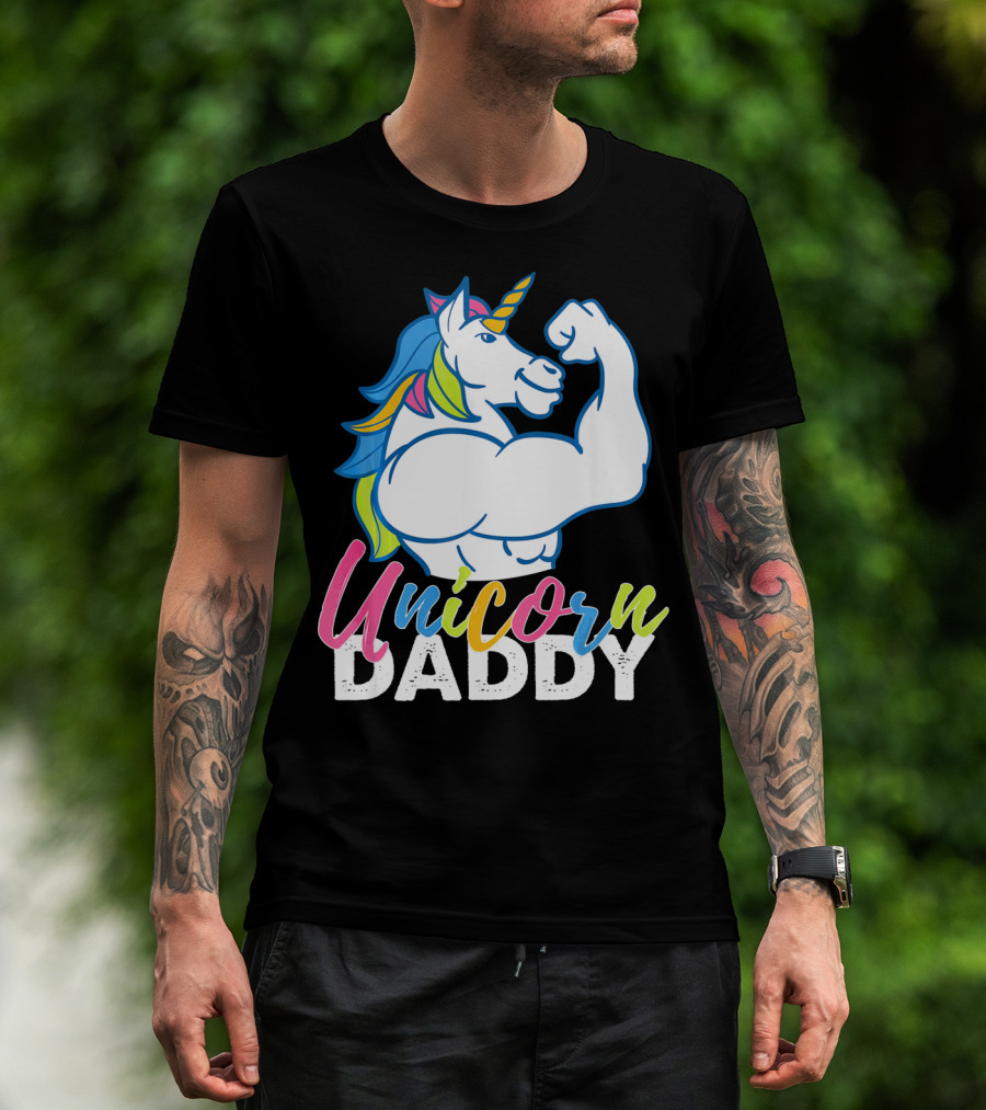 The Unicorn Daddy Funny Gym Magic Bodybuil T-shirt is designed for everyday wear and a consistent fit. Fabric is pre-shrunk ring-spun cotton with durable stitching. See the size chart below for exact measurements.