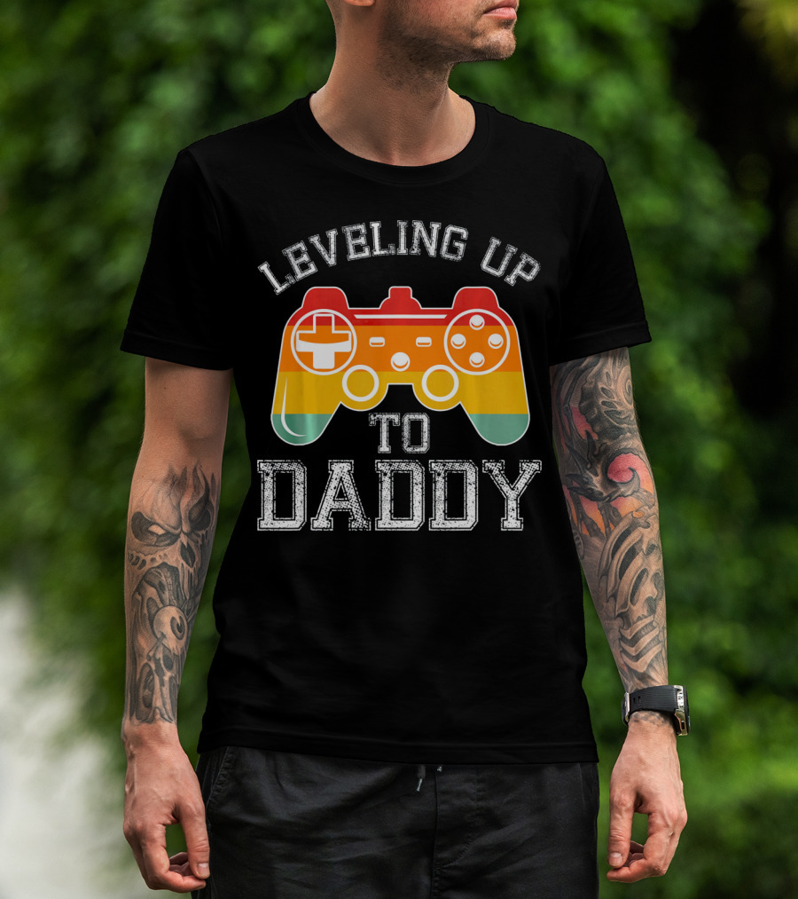 Leveling Up To Daddy Funny Gamer New Dad T-Shirt