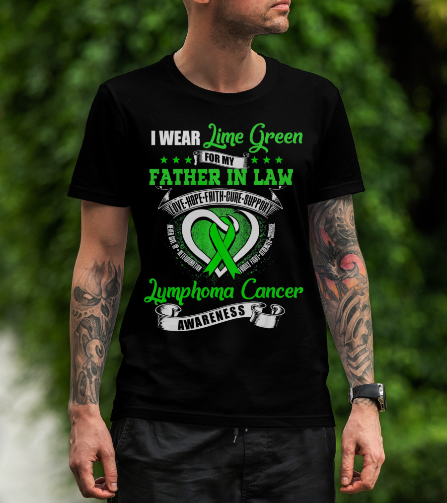 I Wear Lime Green For My Father-in-Law Lymphoma Cancer Awareness Love Hope Faith Cure Support T-Shirt