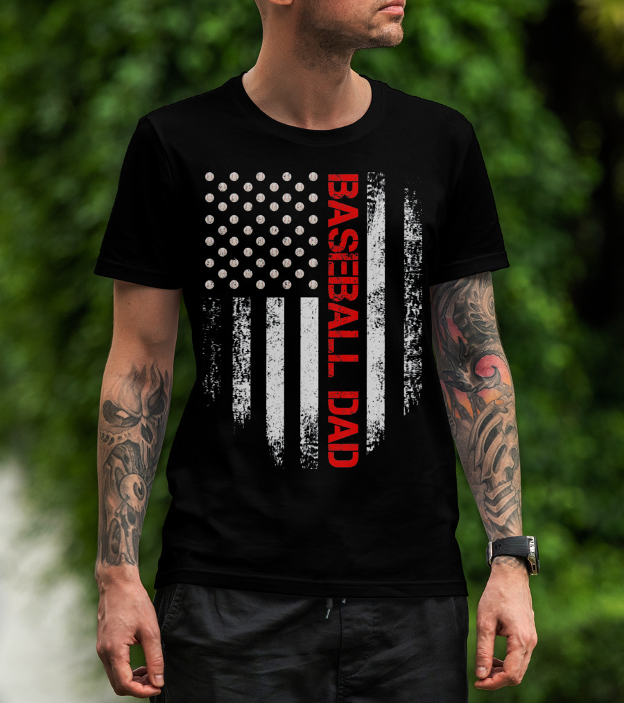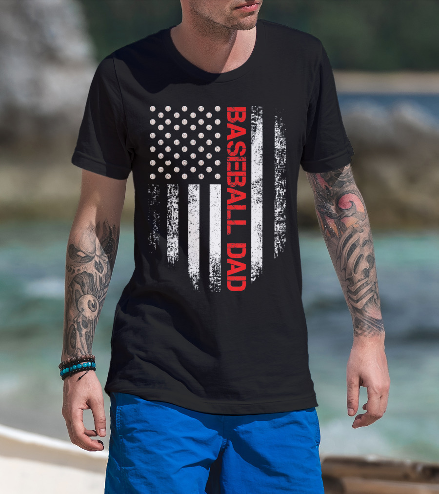 Baseball Dad Vintage USA American Flag Proud T-Shirt