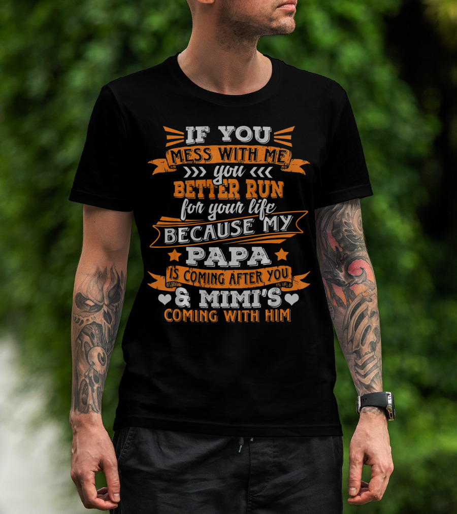 If You Mess With Me You Better Run Because My Papa Is Coming After You And Mimi's Coming With Him T-Shirt
