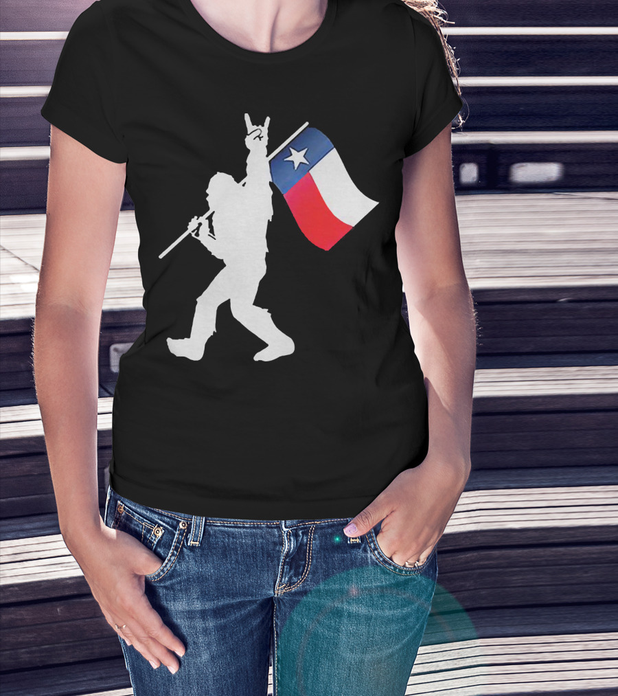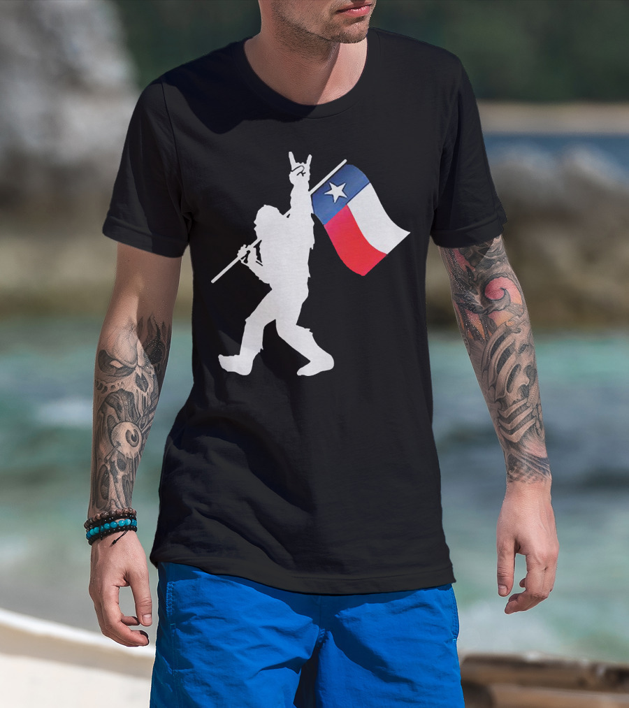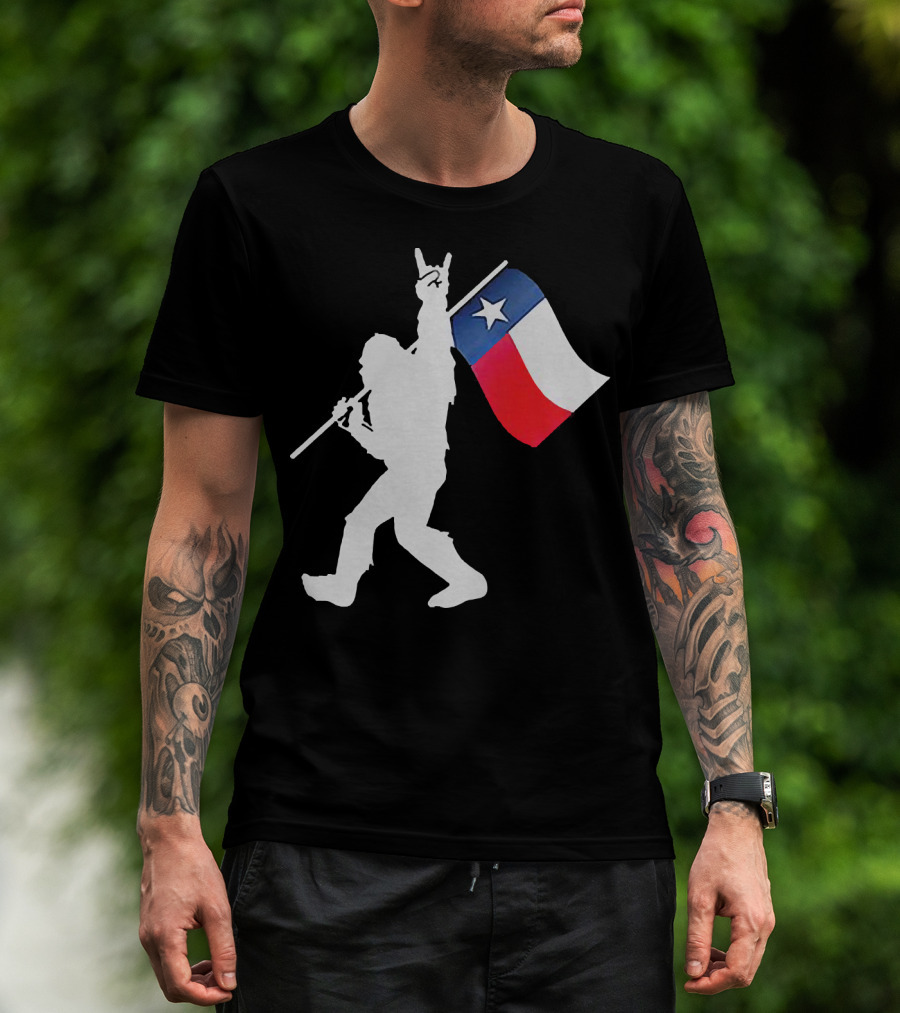Bigfoot Holding Texas Flag Rock And Roll Salute T-Shirt