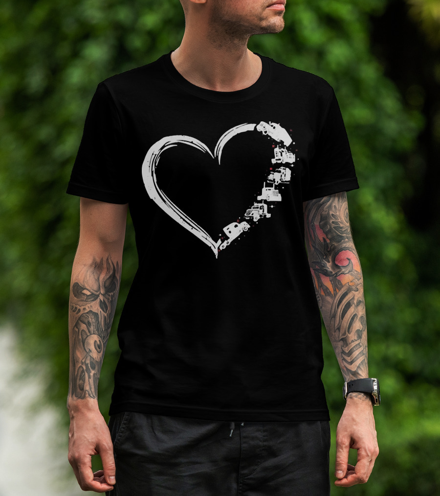 I Love My Trucker Heart Shaped Truck T-Shirt
