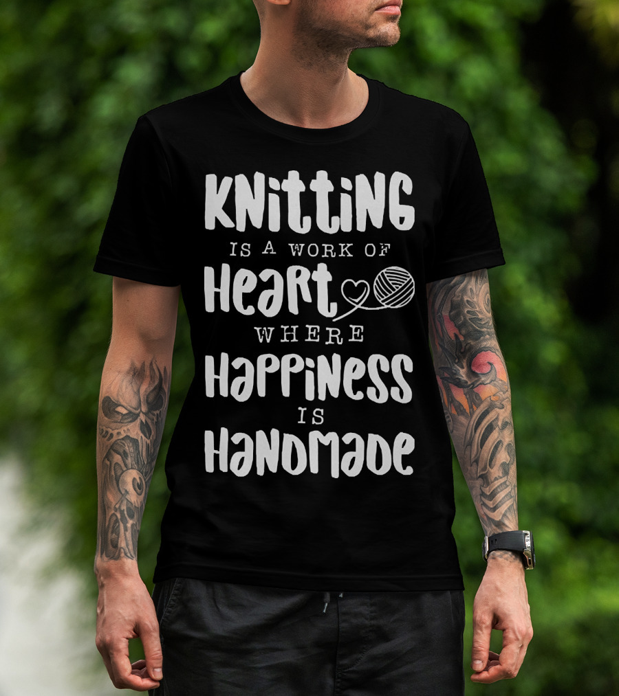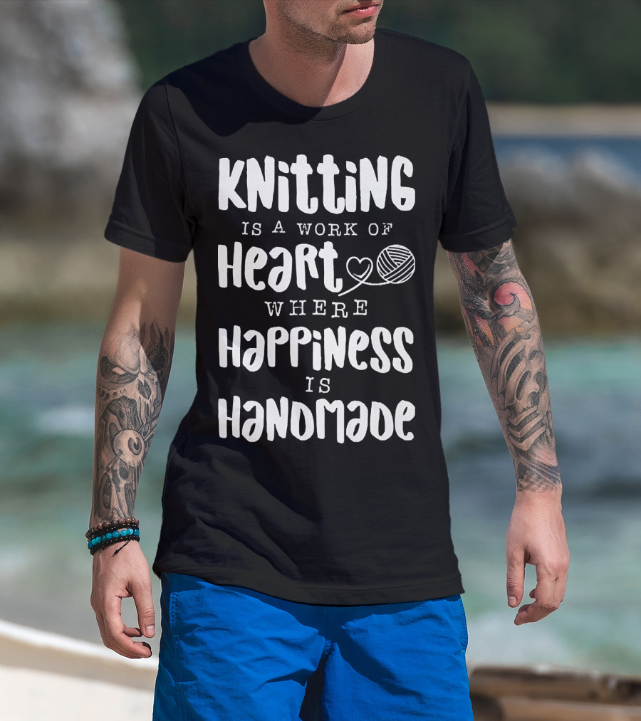 Knitting Is A Work Of Heart Where Happiness Is Handmade With Yarn And Heart Image T-Shirt