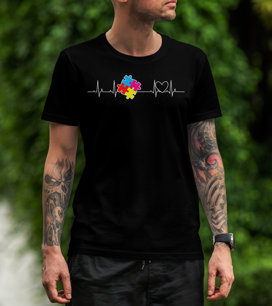 Puzzle Heartbeat Autism Awareness T-Shirt